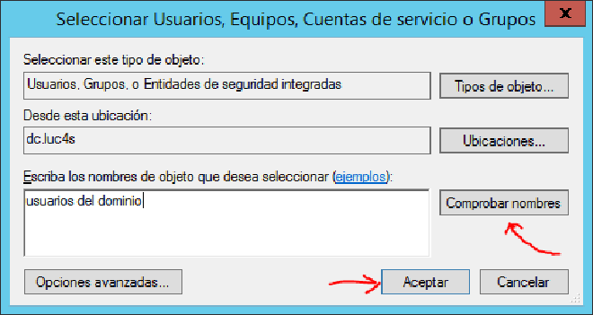 Es este punto ya tendriamos agregado el grupo de usuarios del dominio, luego de ello le damos permiso de inscripcion y le damos a aplicar