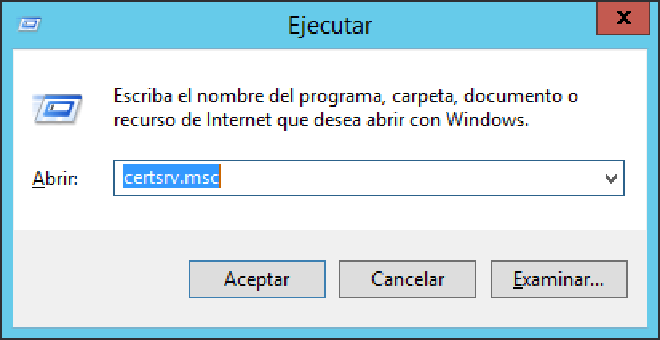 Abrimos la ventana de ejecucion y escribimos certsrv.msc esto abrira la entidad de certificacion de Active Directory