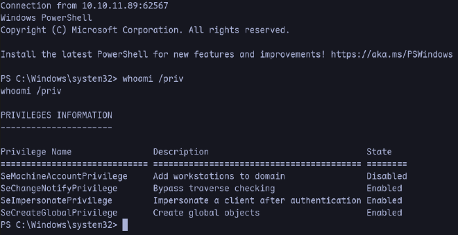 Hay un permiso interesante, llamado SetImpersonatePrivilege ello nos permite utilizar la herramienta GodPotato y ejecutar comandos como nt authority, abajo mas info de que trata la herramienta.