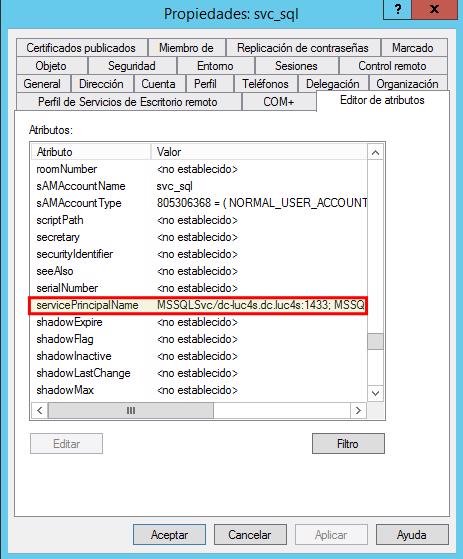 Los servicios compatibles con la autenticación Kerberos requieren un Nombre Principal de Servicio (SPN